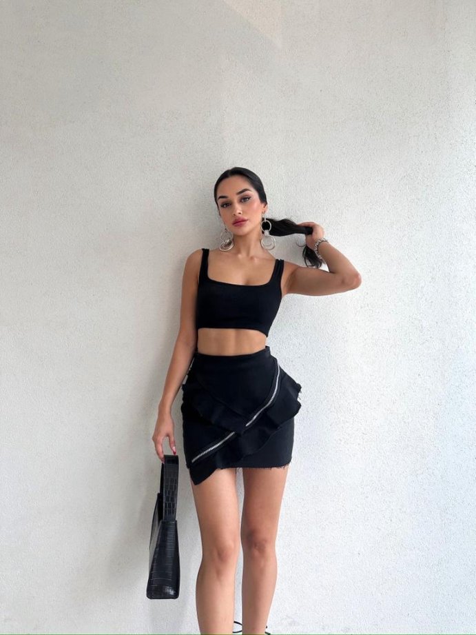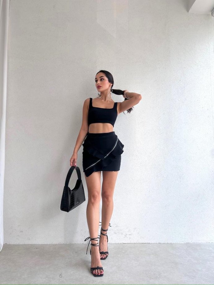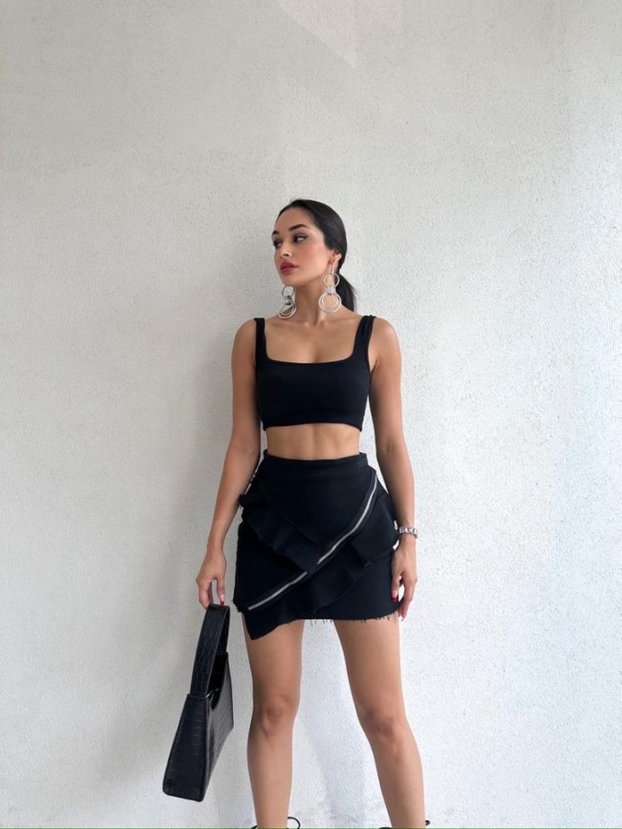 The zipper used in the skirt is used as an accessory.